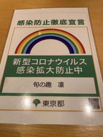 2020/7/29当店では、東京都感染拡大防止ガイドラインに則ってお料理・お酒の提供を行っております。